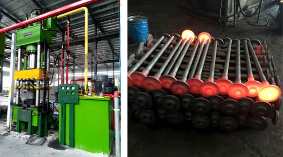 預墩機、擺輾鍛造機是我公司針對汽車半軸相關產品獨特開發的特種成形設備,是國內先進的節能、節材、少無切削及機電一體化的高科技壓力成形設備。該設備具有投資小、耗能低、易維修、操作簡單等優點,輾壓力僅為常規鍛造的1/15-1/10,較普通鍛錘類設備具有效率高(提高3倍以上)、加工零件精度高、節約原材料、噪音低、振動小等優點。自擺輾鍛造機在我國正式生產和推廣以來,現已為汽車半軸等生產企業和必備鍛造制坯設備,并為我國汽車半軸的鍛造加工做出了巨大的貢獻。