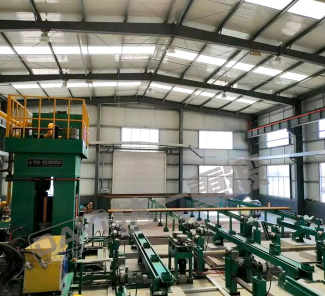 管端加厚機是我公司針對石油鉆桿、油管的加厚工藝研發的新型特種設備,管端加厚的目的主要是為了保證鋼管在管端車加工截面處的強度,鋼管加厚類型有外加厚、內加厚、內外加厚三種工藝。加厚機組有加厚機、輔機及加熱系統等組成,即對鋼管進行橫向運輸、加熱及端部加厚。